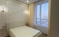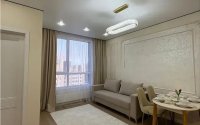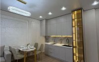 Квартира светлая и уютная: потолки 3 м, высокие двери 2,2 метра. Кухня-гостиная объединяет место для готовки и отдыха, с удобным светлым гарнитуром и подсветкой. Есть отдельная спальня, площадь 40 м².