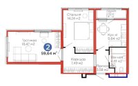 Продажа 2-комнатной квартиры, 59.64 м²