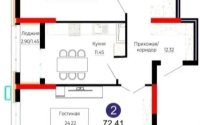 Продажа 2-комнатной квартиры, 74 м²