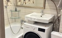 Выполнен капитальный ремонт. Электропроводка медная с установкой автоматических выключателей. Сантехническая разводка вся пластиковая, включая стояки. Радиаторы отопления биметаллические на кранах. Потолки натяжные, комбинированная отделка стен. Напольное покрытие ламинат. Межкомнатные и входная двери новые. Окна пластиковые. Вся мебель встроенная. Также как и техника на кухне. В санузле установлены теплые полы, а в спальне кондиционер. В квартире сигнализация.