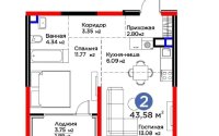 Продажа 2-комнатной квартиры, 43.58 м²