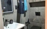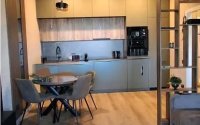Квартира не угловая, с кухней-студией, встроенной кухней, новой сантехникой, установленными счётчиками и кондиционером. После ремонта, делали для себя — всё новое, в квартире никто не жил, бытовая техника также новая.