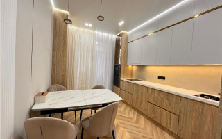 Квартира полностью меблирована. Продуманная планировка: отдельная техническая кухня и гардеробная.