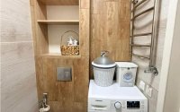 Продаётся квартира с мебелью и встроенной техникой: оборудованная кухня, посудомоечная машина, вытяжка и другое. В квартире установлены два кондиционера, в санузлах — тёплые полы. Дополнительно имеется подвальное помещение 12 м² с ремонтом и стеллажами.