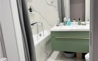 В квартире есть всё необходимое: регулируемые батареи, кондиционер, видеодомофон, Face ID и умный замок. Сделан хороший ремонт, качественная мебель и техника. Есть подсветка в кухне, прихожей и ванной, шторы blackout.