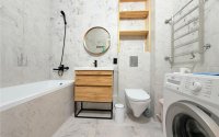 Встроенная бытовая техника: холодильник, посудомоечная машина, духовой шкаф, микроволновая печь.