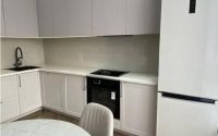 Минималистичная корпусная мебель гармонично вписывается в интерьер, делая его не только эстетичным, но и максимально функциональным. Встроенная техника (включая варочную панель и посудомоечную машину) значительно упрощает повседневную жизнь.