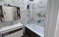 Не угловая квартира с кухней-студией и встроенной кухонной зоной. Установлена новая сантехника. Санузел оборудован качественной сантехникой Grohe.