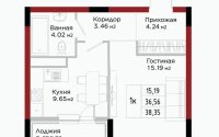 38.5 м², кухня – 9.65 м²