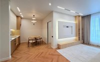 В квартире выполнен качественный ,дизайнерский ремонт , из материалов премиального качества.