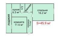 - Площадь: 45,9 м²