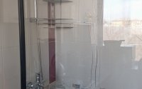 Душ-кабина. Есть балкон. Остановка автобусов , рынок, поликлиника, супермаркет близко к дому. Свежий ремонт. Теплая. Лифт.