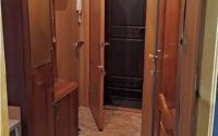Двойные входные двери (деревянная + железная), коридор отделан деревом