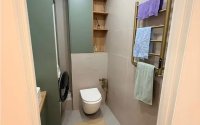 • Натяжной потолок специально не делали, чтобы сохранить высоту пространства (натяжные потолки уменьшают высоту примерно на 8–10 см)