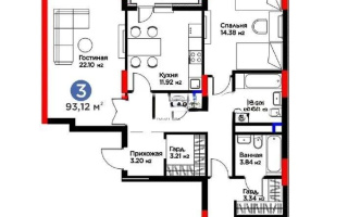 Продажа 3-комнатной квартиры, 92.19 м²