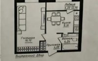 Общая площадь — 39,26 м². Квартира расположена на 11 этаже, с высокие потолки, что создаёт ощущение простора и комфорта. Удачная планировка позволяет легко переделать её в евро-двухкомнатную.