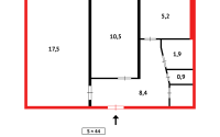 Общая площадь 44кв.м/кухня 5,3кв.м, кладовка-гардеробная.