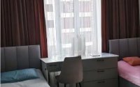 Полностью меблирована, остаётся вся техника: холодильник, посудомоечная машина, духовка, стеклокерамическая плита.