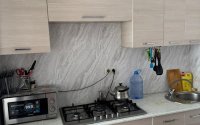 Остаётся мебель и техника: кухонный гарнитур, газовая плита, холодильник, стиральная машина, кондиционер, диван, спальный гарнитур, шкаф, прихожая, стол и стулья. Установлены решётки.