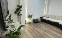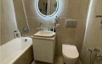Квартира полностью меблирована: спальня с кроватью (подъёмный механизм) и шкафами, есть диван, стол, стулья. Кухня укомплектована техникой — посудомоечная машина, варочная поверхность, духовой шкаф, стиральная машина. Дополнительно — тумбы, обувница и прочее.