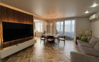 Выполнен современный качественный капитальный ремонт. Электропроводка медная на автоматических выключателях. Сантехническая разводка, включая все стояки пластиковые. Радиаторы отопления чугунные с регуляторами, прошли очистку и опрессовку. Окна пластиковые 5-камерные. Панорамная раздвижная балконная система. Потолки натяжные матовые, стены выравнены и оклеены обоями. TV зона с подсветкой и декоративными панелями. Пол на стяжке, напольное покрытие ламинат с рисунком английская ёлка, на балконе, коридоре и в сан узлах керамогранит с вмонтированным теплым полом . Мастер спальня оборудована отдельным сан узлом и гардеробным помещением. Кухонный гарнитур с подсветкой рабочей зоны, встроенной техникой фирмы bosch. Встроенный шкаф с оборудованным местом под гладильную доску. Установлены стиральная и сушильная машины. Два кондиционера. Один санузел оборудован ванной, другой душевой.