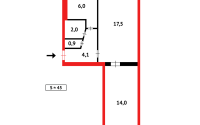 Общая площадь 45 кв.м. кухня 6 кв.м.