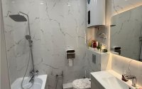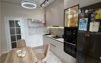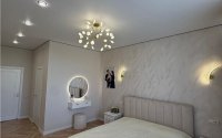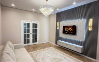 Ремонт выполнен по авторскому проекту с качественными материалами: бамбуковые декоративные стены, ламинат «английская ёлочка», двери Profildoors, современная ТВ-зона и парящая подсветка. Все чеки и гарантии сохранены.