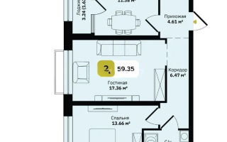 Продажа 2-комнатной квартиры, 61 м²