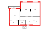 (+) Удобная квартира общая площадь 62.1 квадратных метров.