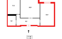 Общая площадь - 60.7 кв.м, кухня - 11.6 кв.м.