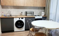 🍳 Полная комплектация: Кухня с современной техникой (плита, СВЧ, холодильник) и полным набором посуды.