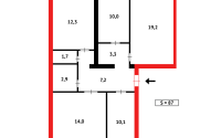 Дом продуманной планировки: три изолированные комнаты обеспечат личное пространство каждому, а одна проходная отлично подойдёт под гостиную или зону отдыха.