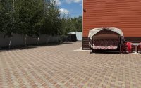 — Полностью выложен брусчаткой