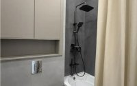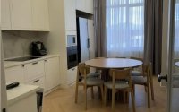Есть 2 кондиционера, 2 телевизора, встроенная кухня с техникой (духовка, плита, посудомойка), холодильник и морозильник, а также стиральная и сушильная машина.