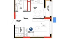 33.33 м², кухня – 8.6 м²