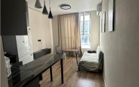 Полностью меблирована: качественная мебель, бытовая техника, встроенный гардероб, стильное освещение и шторы. Удобная планировка включает просторную кухню-гостиную и уютную спальню.