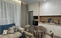 Современная квартира с удобной планировкой: спальня + кухня-гостиная. Полностью меблирована, встроенная кухня остаётся.