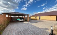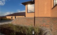 Высота потолков 3,20 м создаёт ощущение свободы и простора. Дом построен из газоблоков с облицовкой красным кирпичом, крыша — металлочерепица. Использованы только качественные и долговечные материалы.