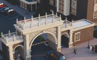 Проект состоит из трёх многосекционных зданий, выполненных в едином архитектурном стиле. При строительстве учитываются особенности сейсмической активности региона и его климат, а основой технологии строительства стала классическая кирпичная кладка. Наружные стены надежно утеплены, что гарантирует хорошую теплоизоляцию и энергоэффективность. Фасады украшаются гранитом, декоративной штукатуркой и 3D-панелями. Цветовая палитра выдержана в благородных бежево-коричневых тонах. Здания выделяются архитектурной лепниной, арочными окнами, ажурными коваными балконами, изящными карнизами и выразительными входными группами.