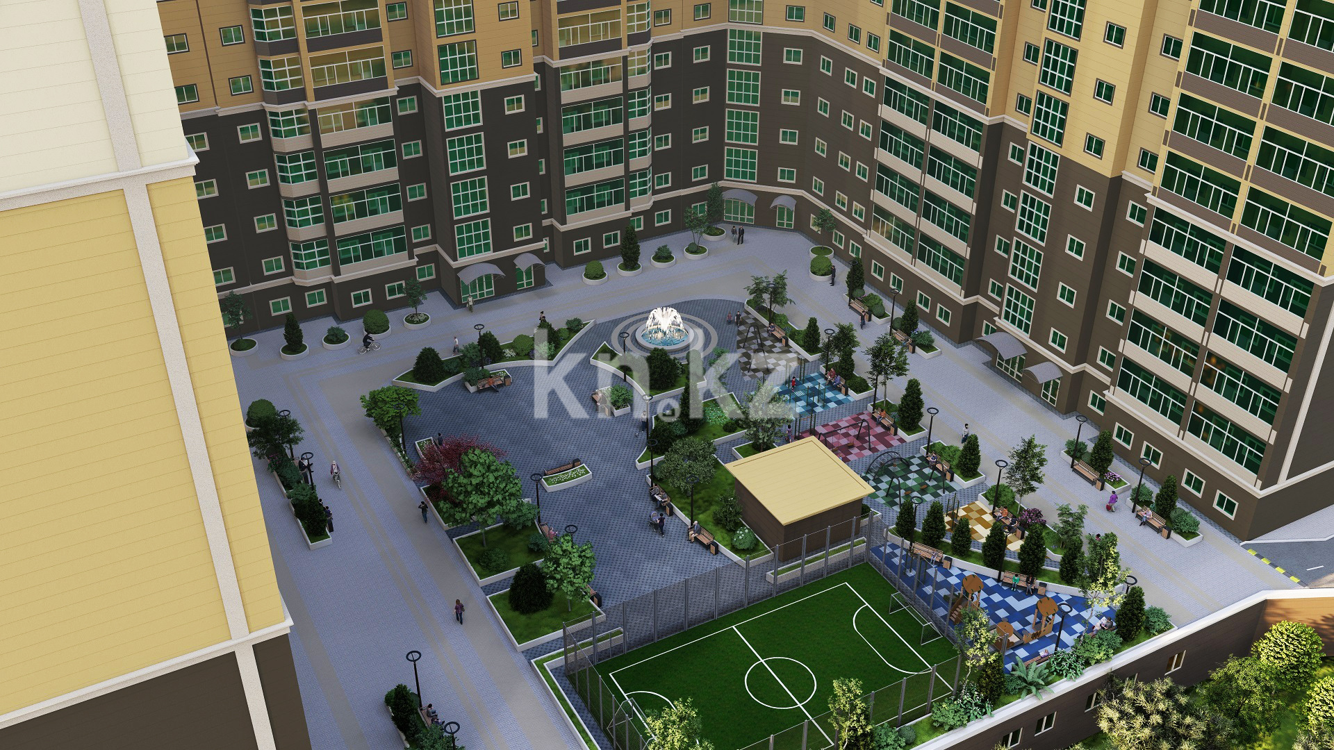 Закрытый двор без машин, с озеленением и парками отдыха для пеших прогулок и досуга. Детская площадка разделена на зоны для разных возрастов, от малышей до подростков. Оборудована спортивная площадка (с уличными тренажерами) и огороженное стальной сеткой поле для мини-футбола. Безопасность жильцов обеспечивает организованное круглосуточное видеонаблюдение (в местах общего пользования: в холлах, на паркинге), противопожарные системы и домофоны.
