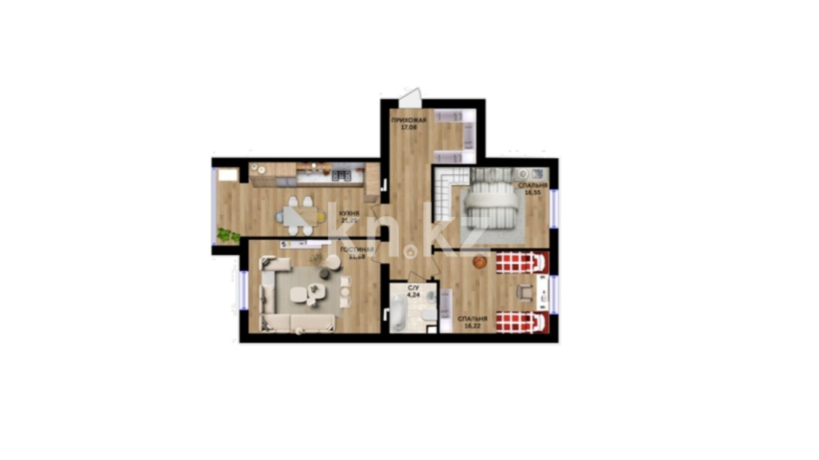 В комплексе представлены 1‑, 2‑ и 3‑комнатные квартиры.