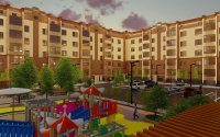 ЖК Sunqar - три пятиэтажных дома (150 квартиры) бизнес-класса спроектированных в едином стиле с современными элементами.