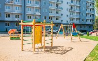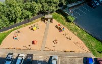 На придомовой территории оборудованы гостевые парковочные места и подземный паркинг, организована зона отдыха, а также спортивная и детская игровая площадка.