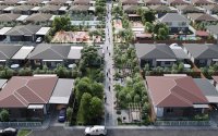 Дома расположены рядами, между которыми проложены удобные проезды и пешеходные дорожки, выложенные качественной тротуарной плиткой. Современные уличные фонари освещают территорию, создавая уютную атмосферу в темное время суток.