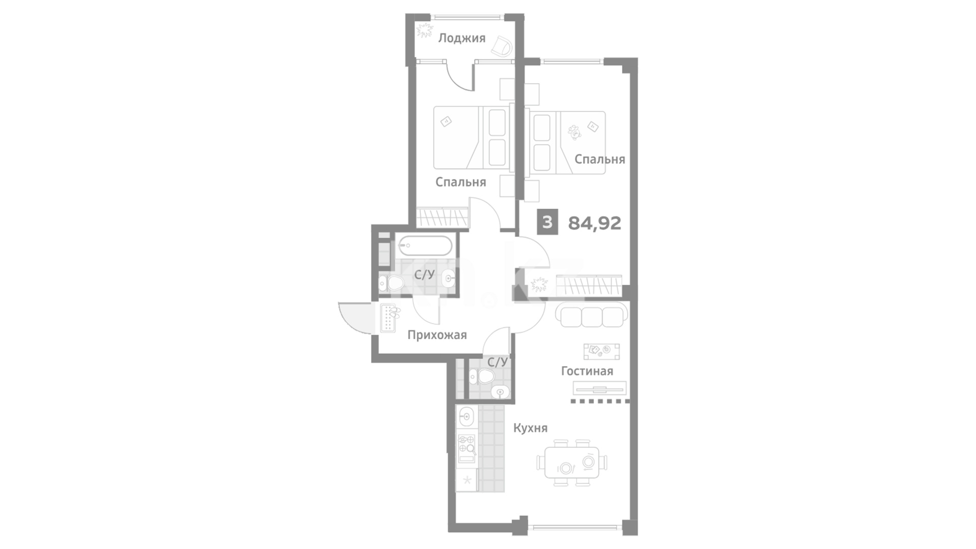 В комплексе представлены 1-, 2-, 3-комнатные квартиры площадью от 40 до 90 кв. метров.