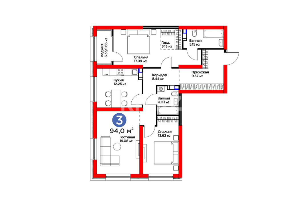 3-комнатная
