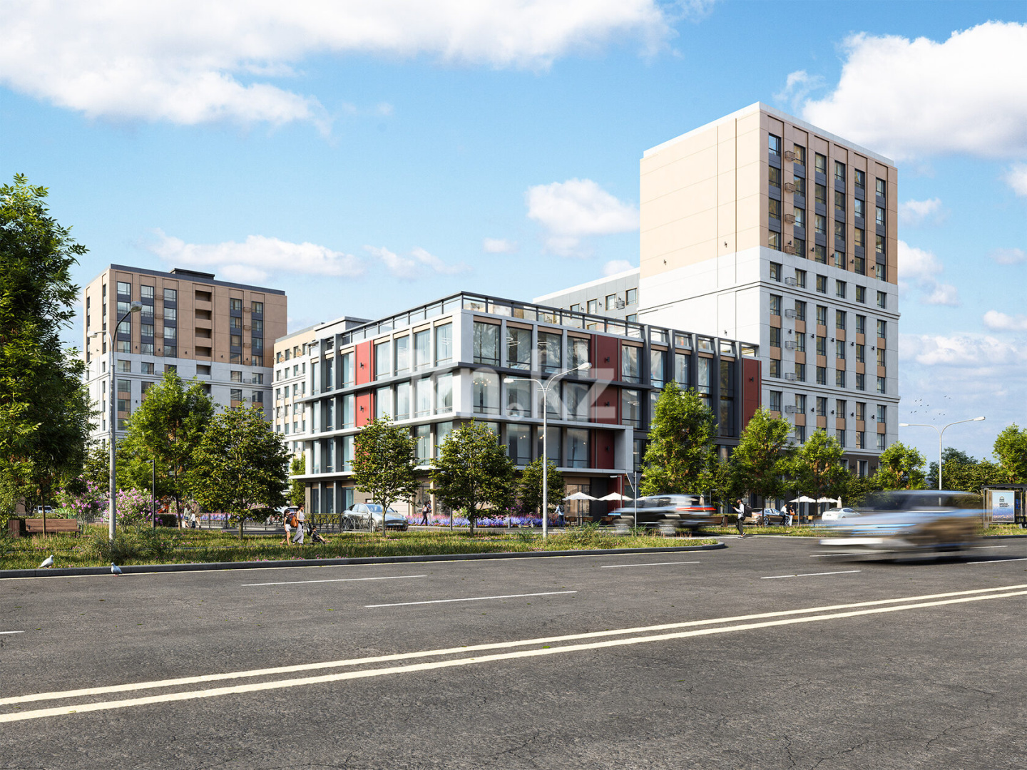 Благоустройство проработано: во дворе предусмотрены детские площадки, спортивные зоны, лаунж-зоны для отдыха, отдельные помещения для самокатов и детских колясок, а также SPA-центр с бассейнами для взрослых и детей, фитнес-зал, коммерческие помещения на первом этаже — супермаркет, кафе, рестораны. Особое внимание уделено семейным сценариям: просторные планировки, большая часть квартир именно для семей, закрытая безопасная территория и наличие удобств для разных возрастов.