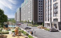 У каждого блока по 3 детские площадки для разных возрастов (12 детских площадок), а также футбольное и баскетбольное поле.