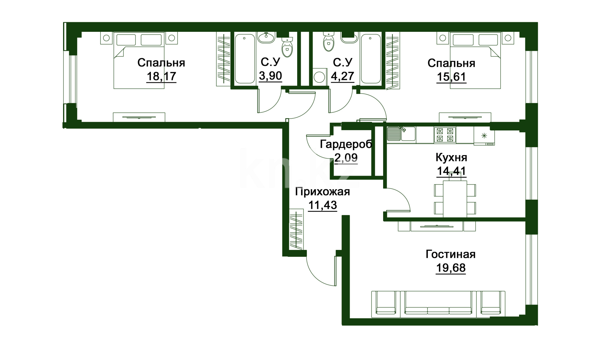 Эргономичные планировочные решения 1-, 2- и 3-комнатных квартиры, с панорамными окнами. 16 видов планировок. Наличие кладовых помещений, на (1) этаже, соответствует количеству квартир.