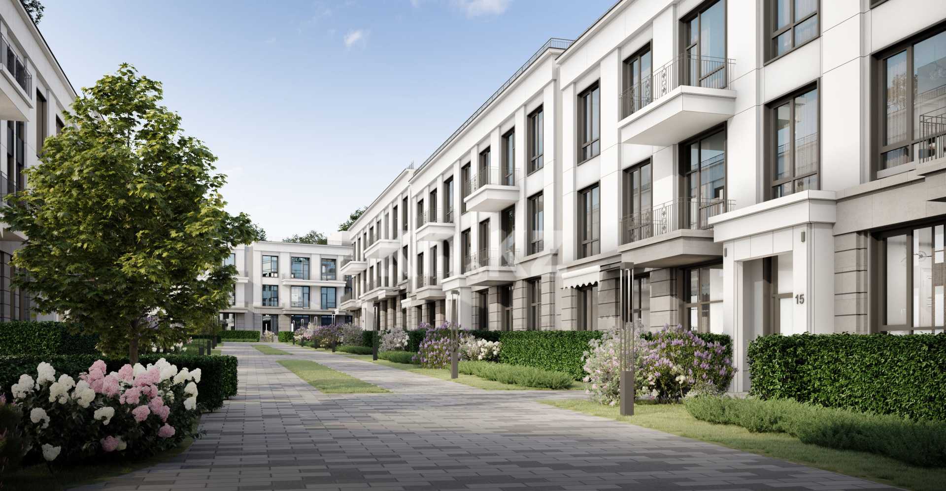 ЖК Aulet представлен 3-этажными домами с открытыми террасами на первых этажах (до 22 кв.м), огороженными живой изгородью.
